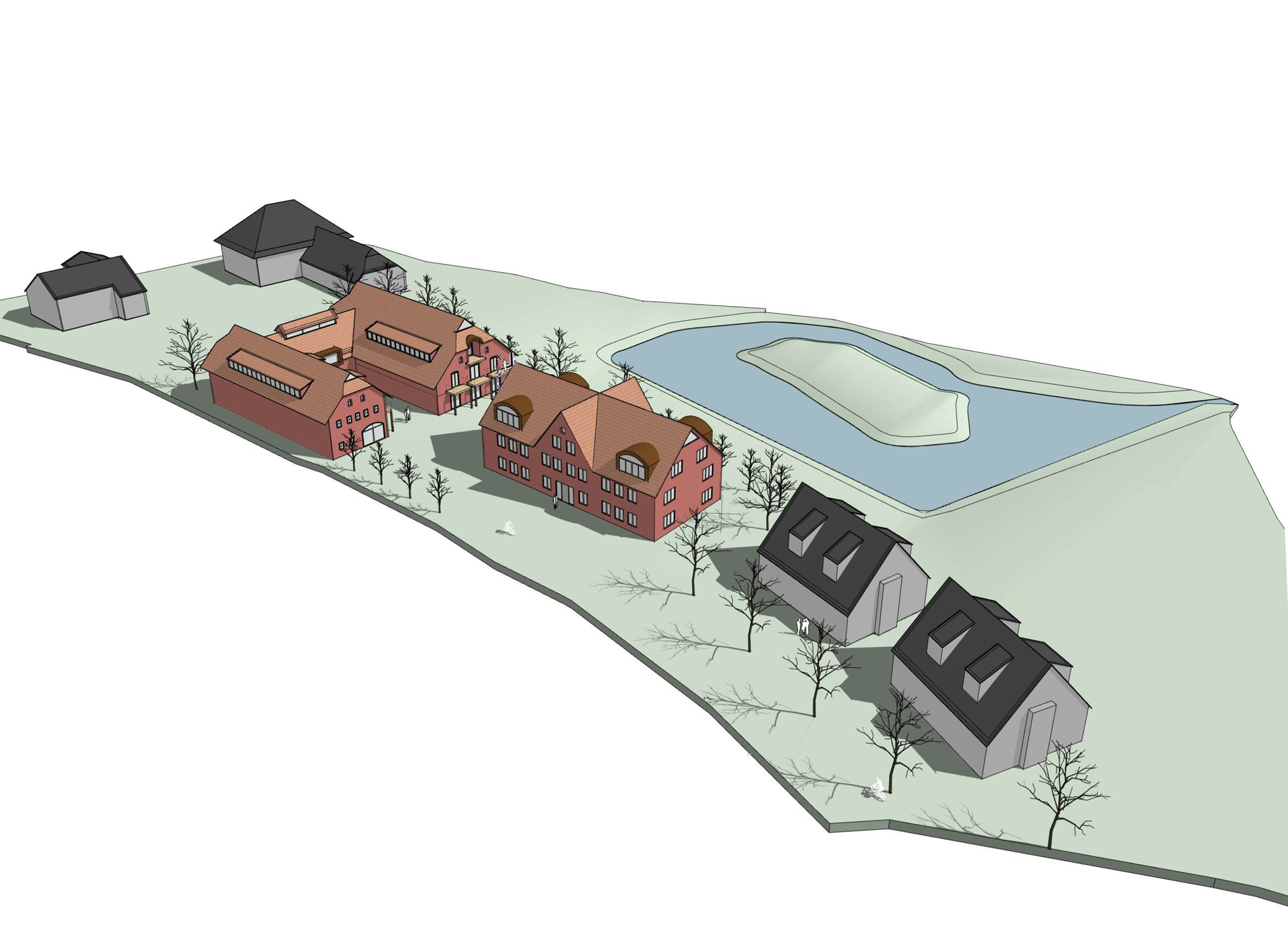 Entwurfsstudie Resthof in Schlewig Holstein inkl. Neubauteil Geschosswohnungen